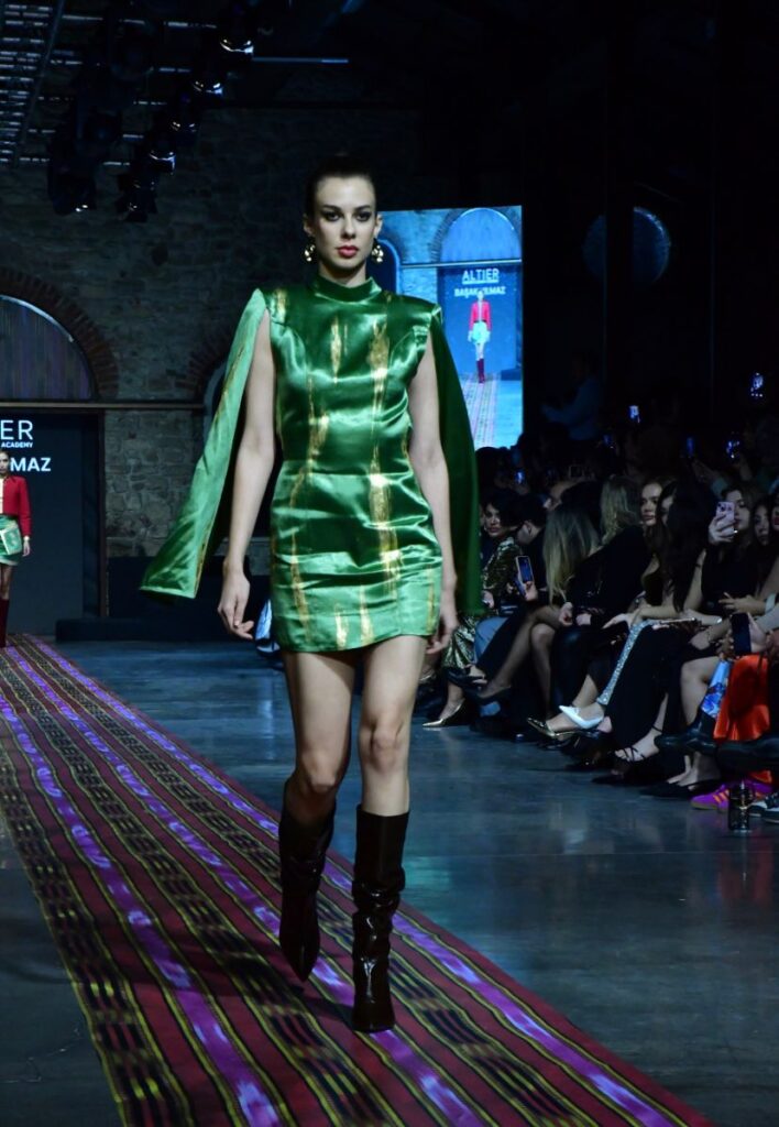 Defilede genç tasarımcıların özel çalışmalarını taşıyan Deren Talu, Kutnu kumaşıyla yapılan tasarımların kendisini çok etkilediğini belirtti: