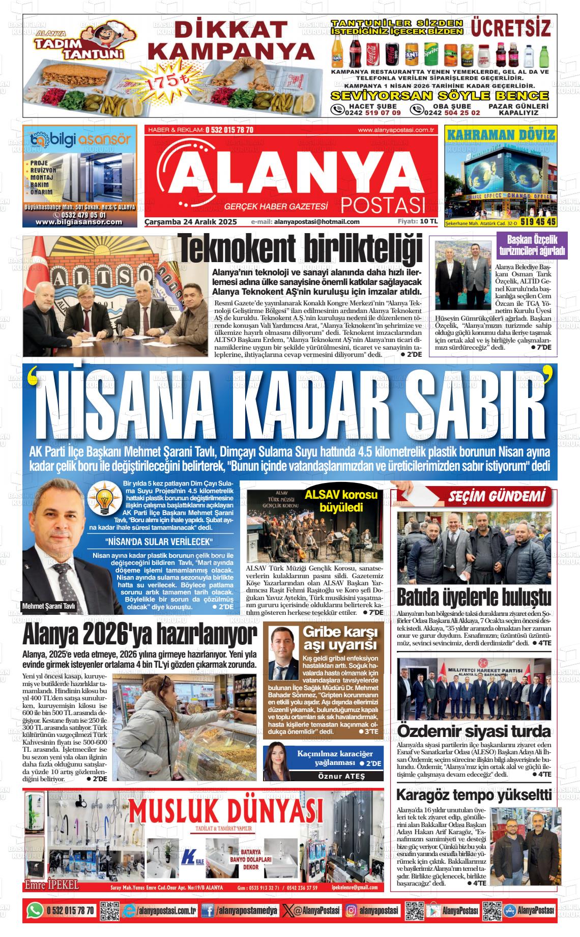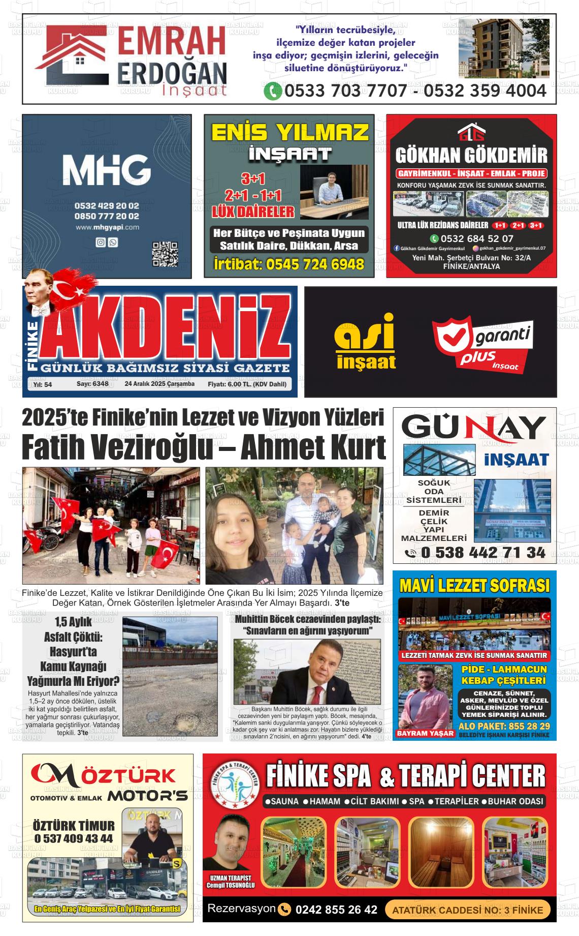 24 Aralık 2025, Çarşamba Günü Manşeti