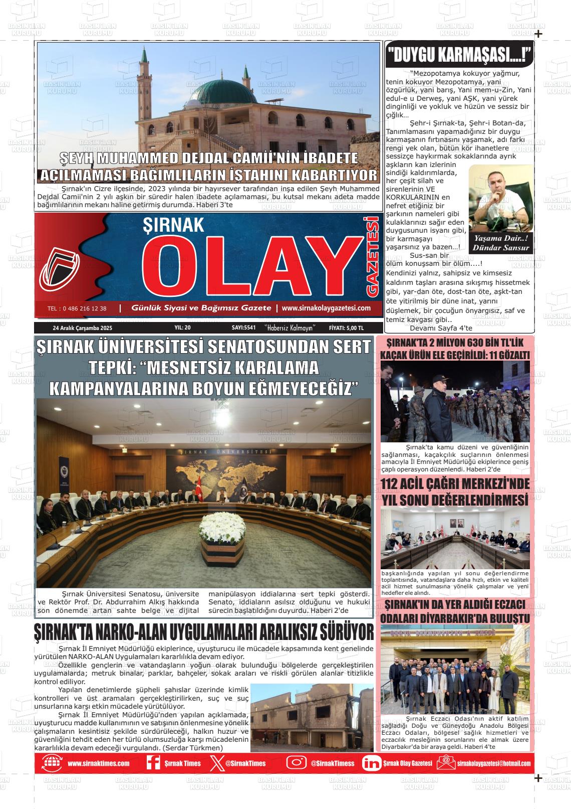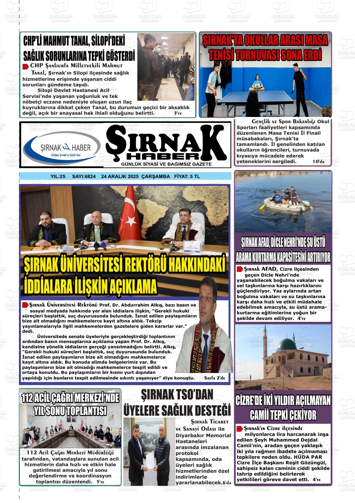Şırnak Yerel Gazeteleri 25 Mart 2026, Çarşamba Günü Manşeti