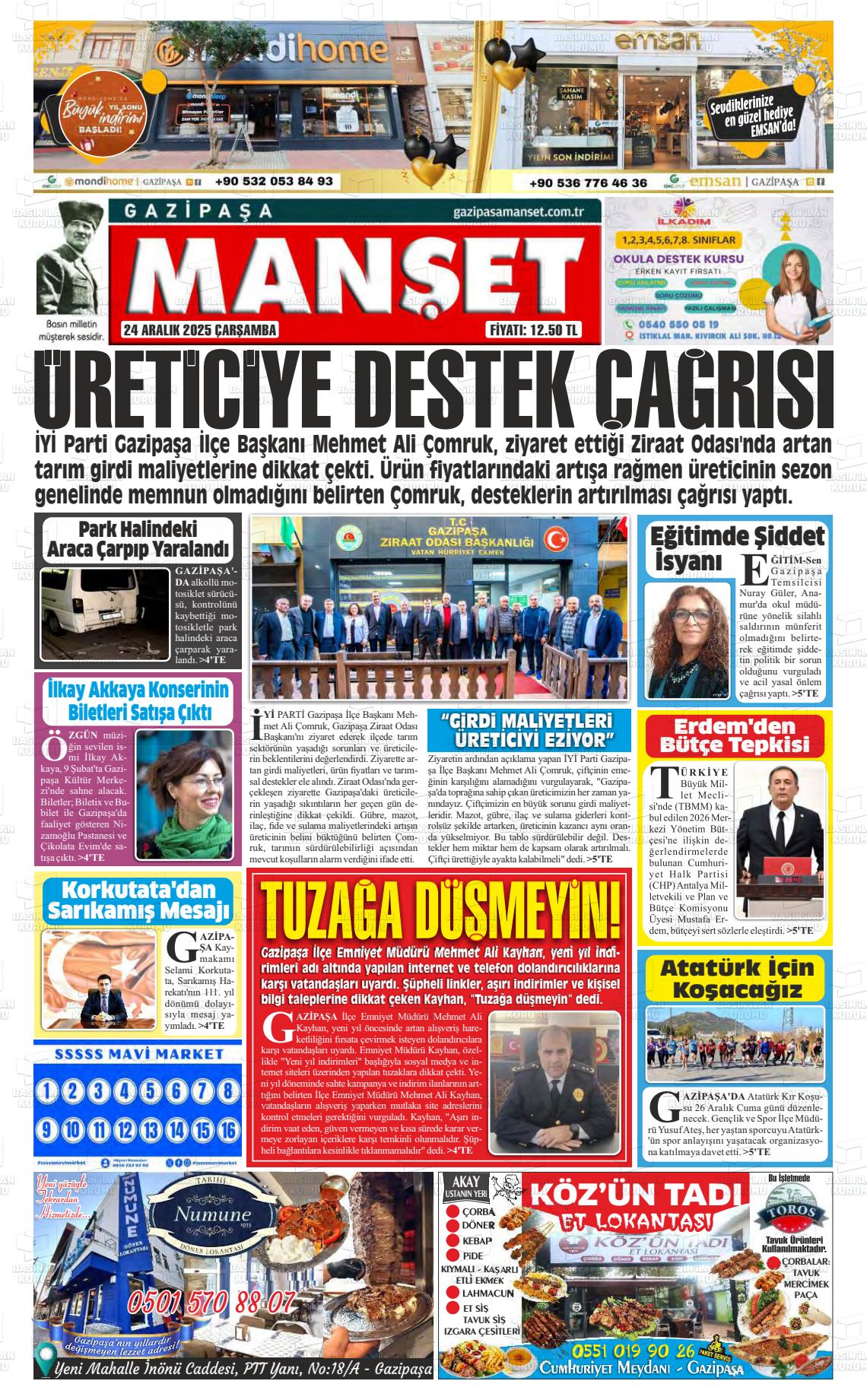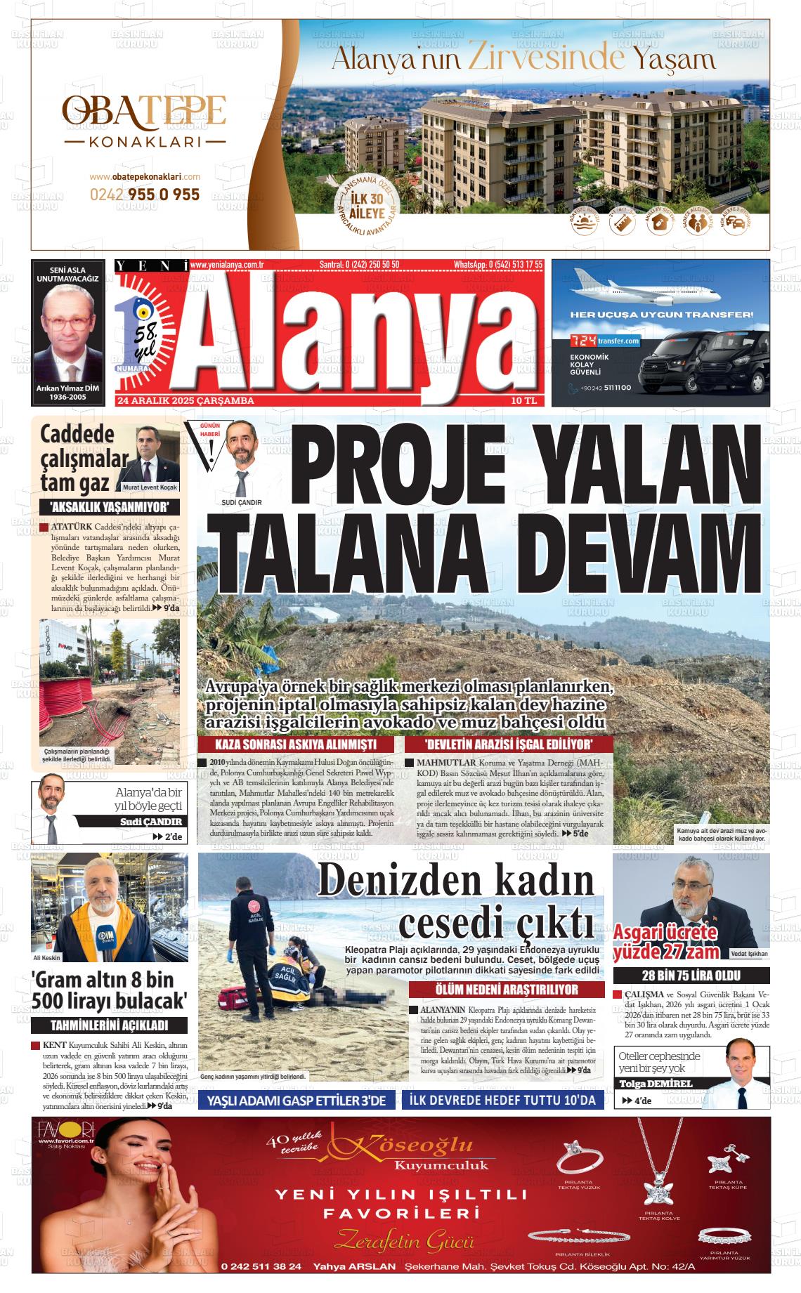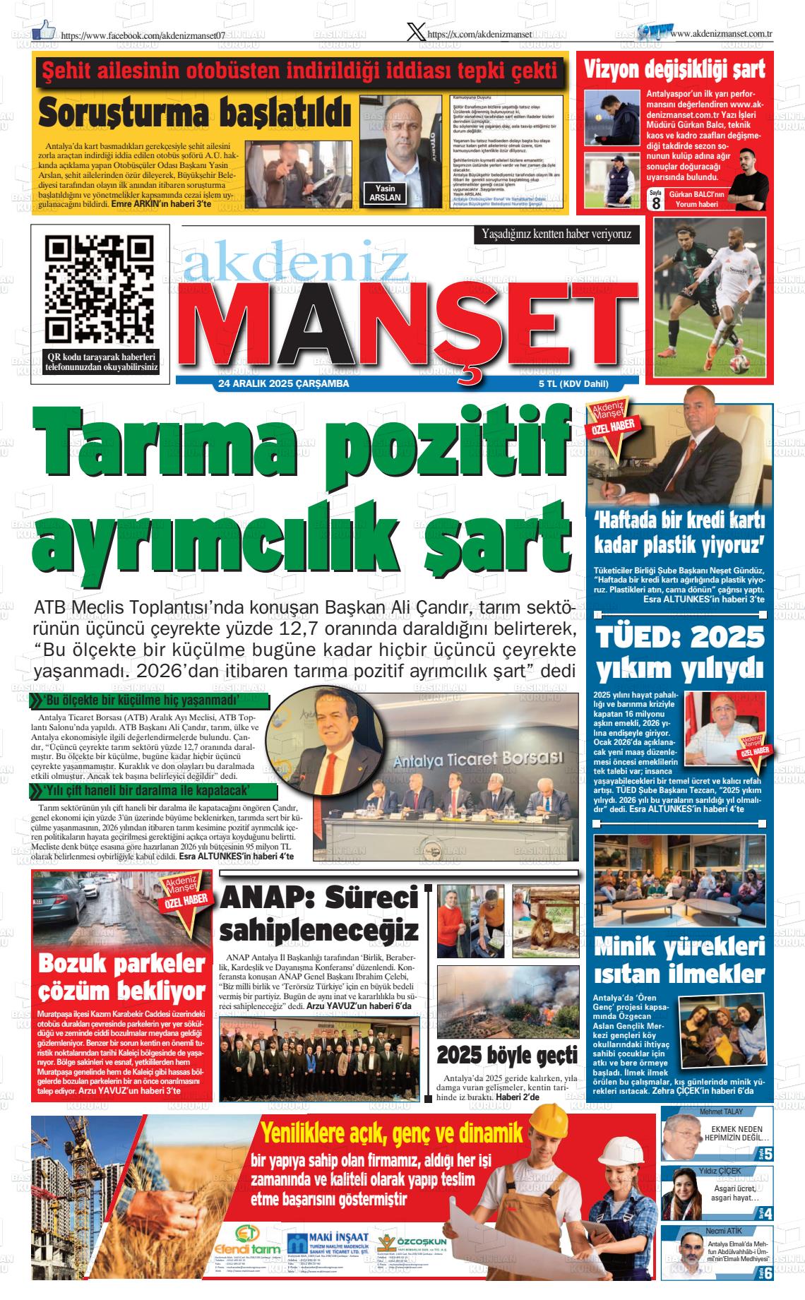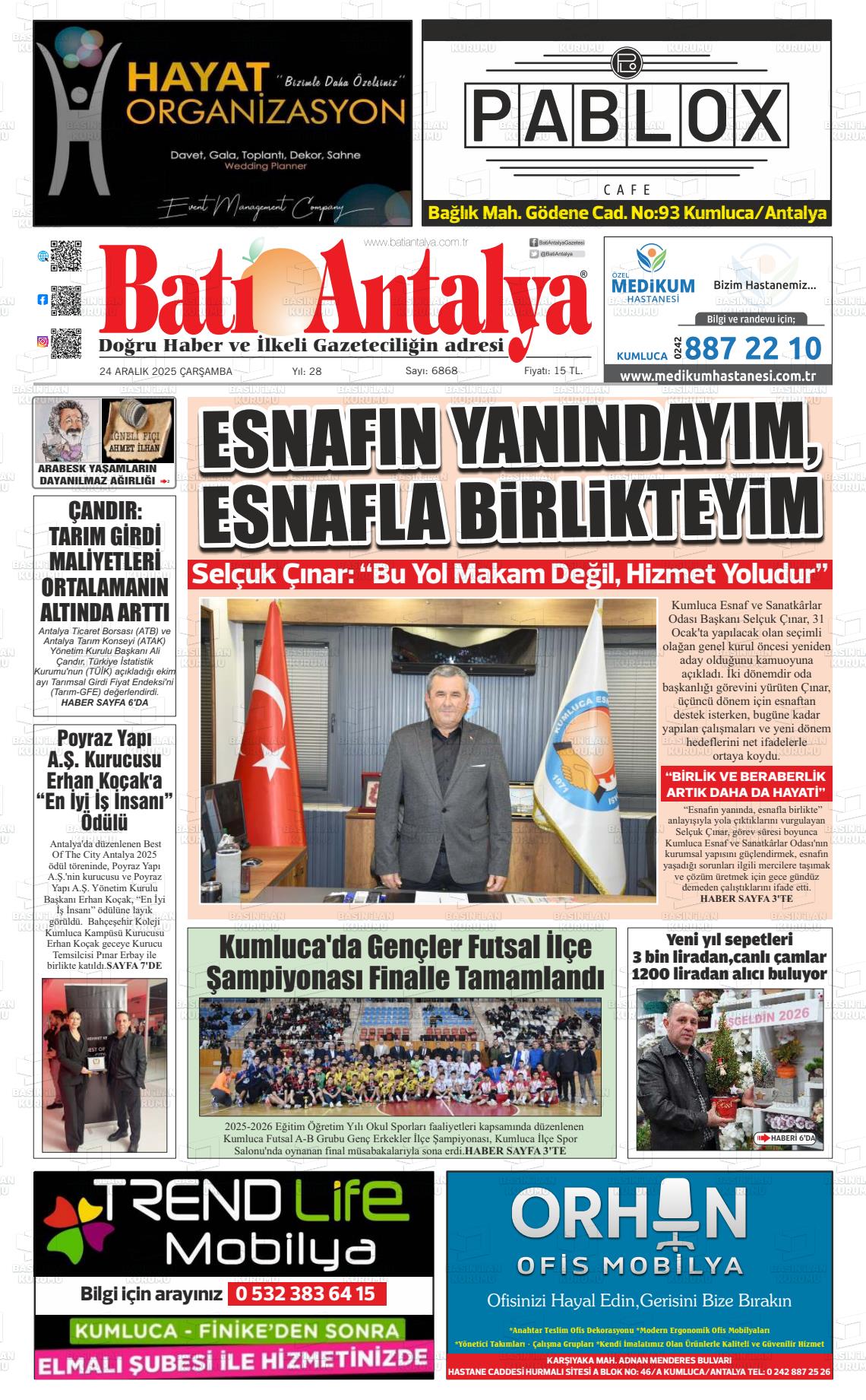 Antalya Yerel Gazeteleri 25 Mart 2026, Çarşamba Günü Manşeti