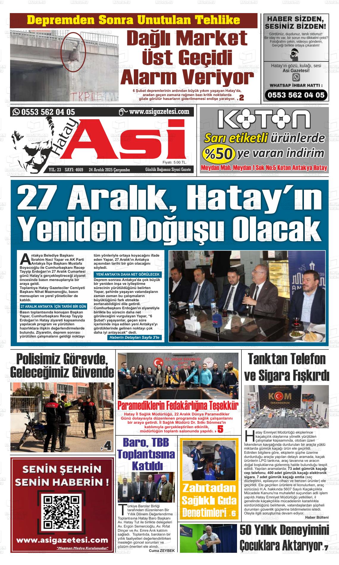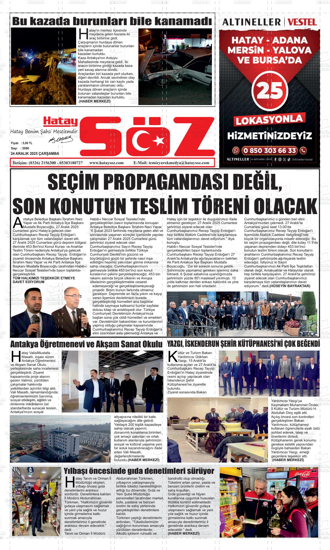 Hatay Yerel Gazeteleri 03 Nisan 2026, Cuma Günü Manşeti