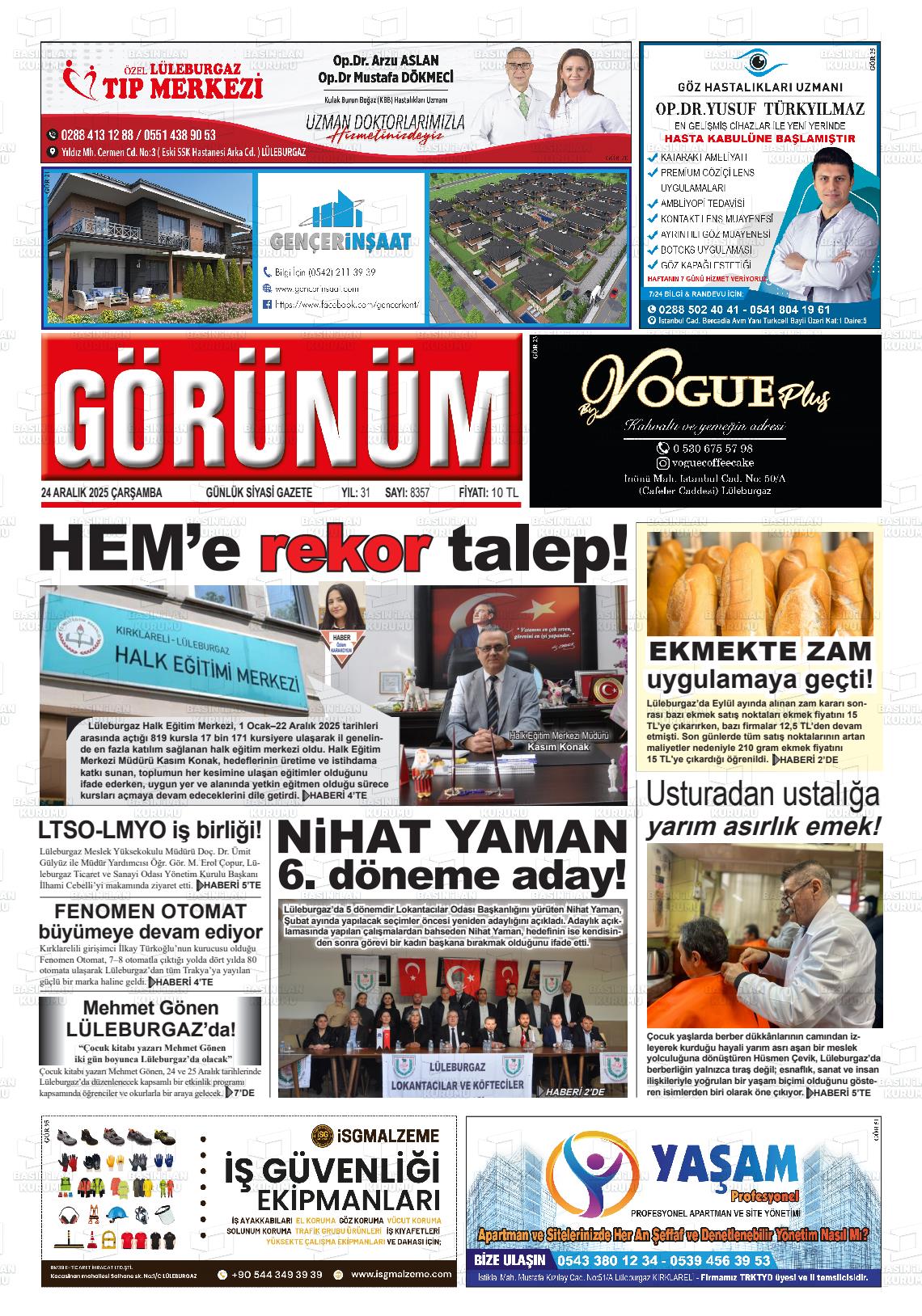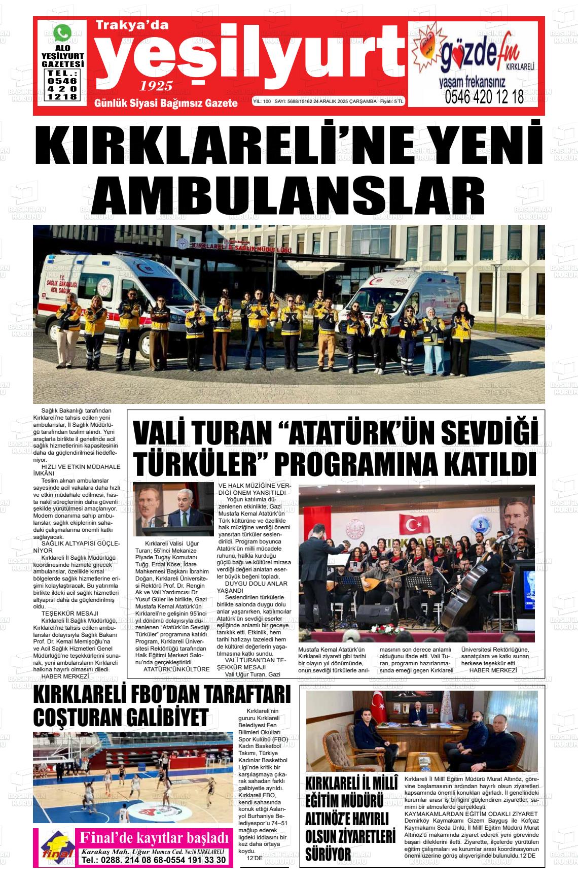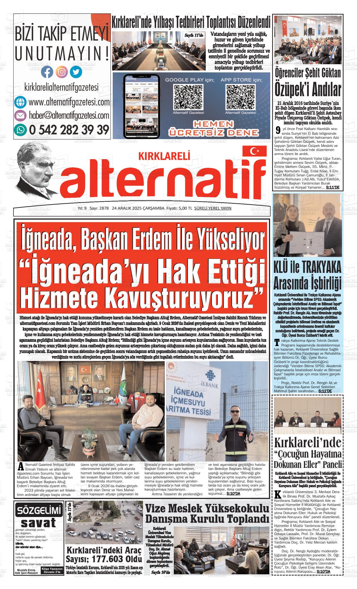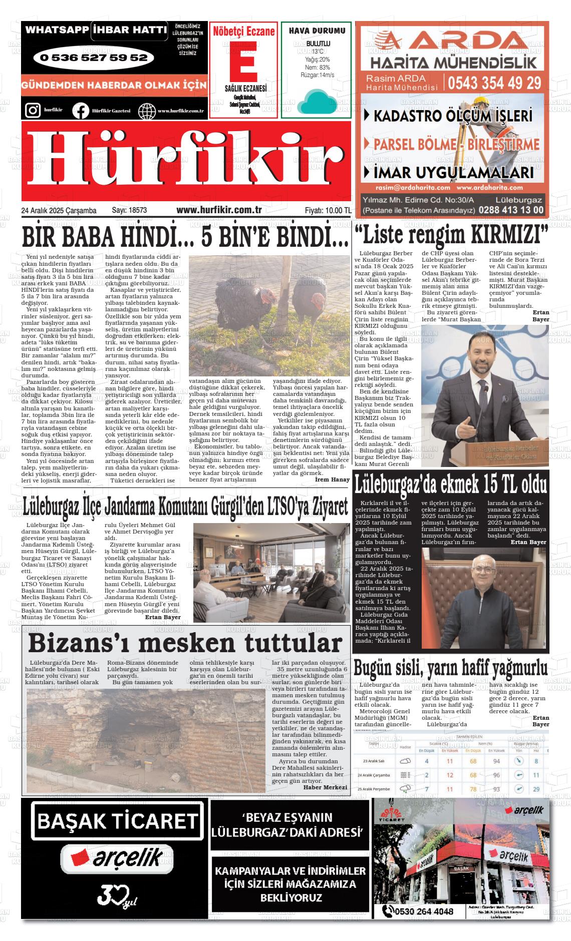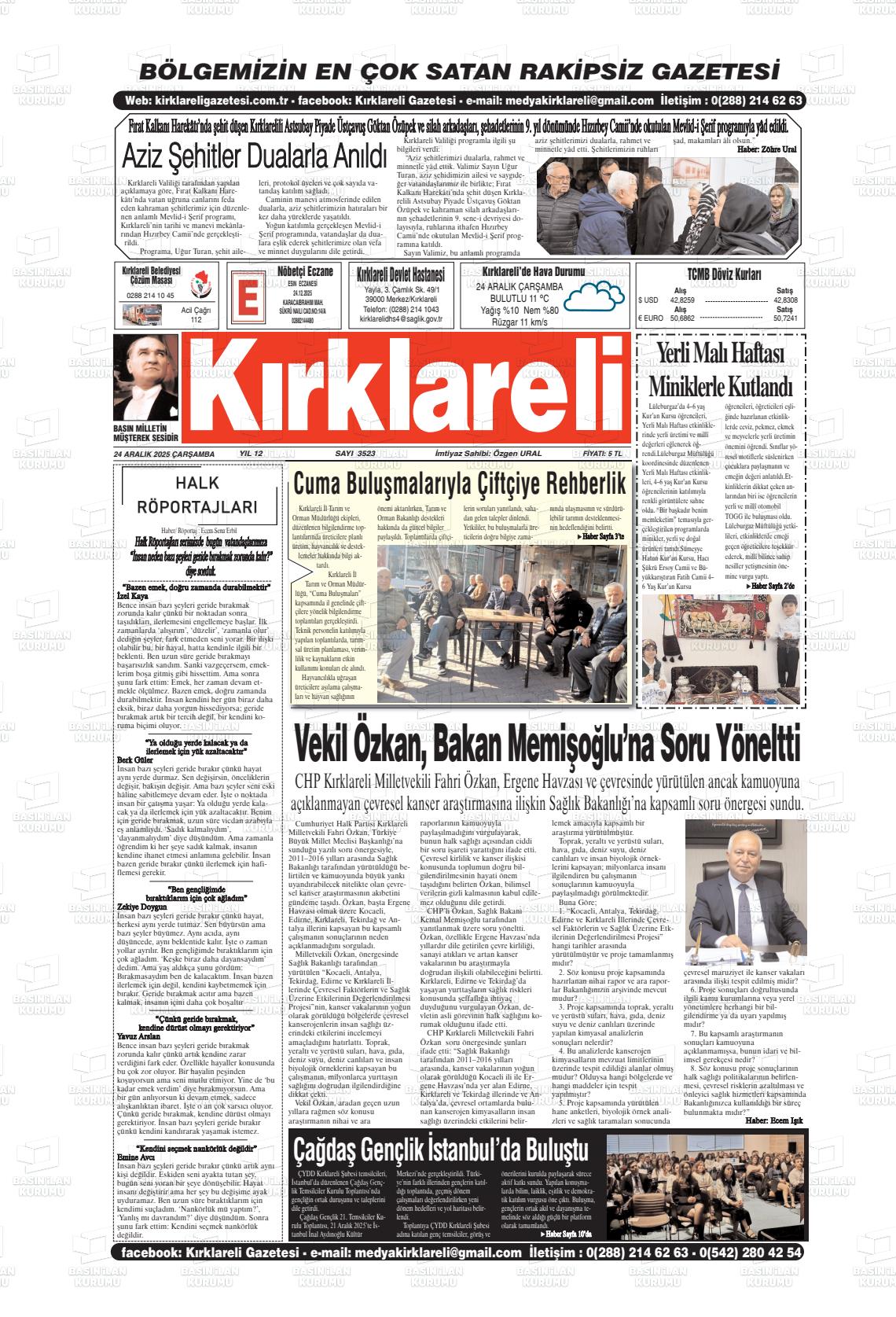 Kırklarelİ Yerel Gazeteleri 25 Mart 2026, Çarşamba Günü Manşeti