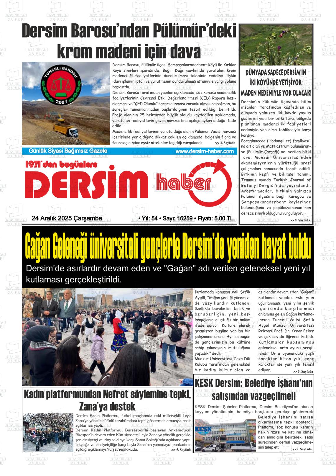 Tunceli Gazeteleri