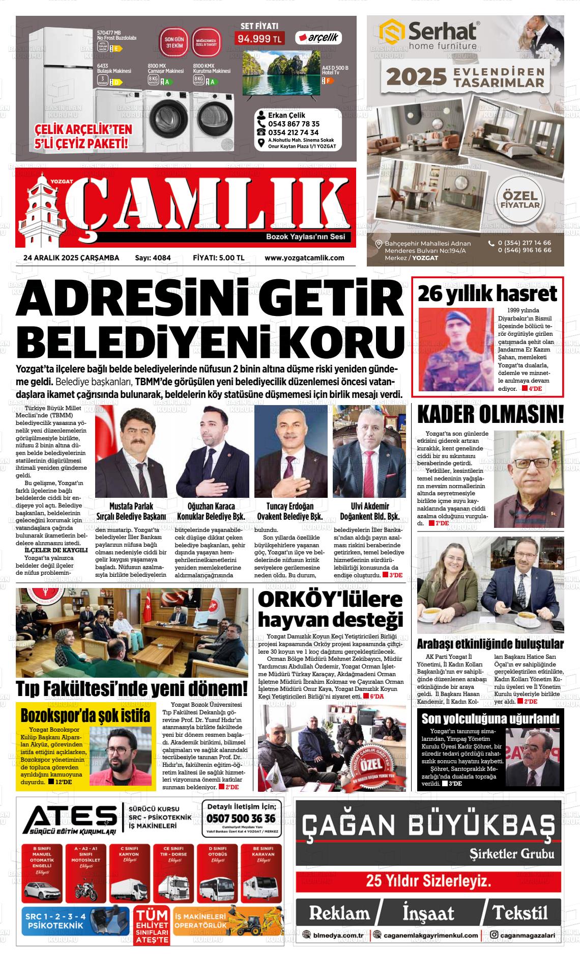 Yozgat Yerel Gazeteleri 08 Şubat 2026, Pazar Günü Manşeti